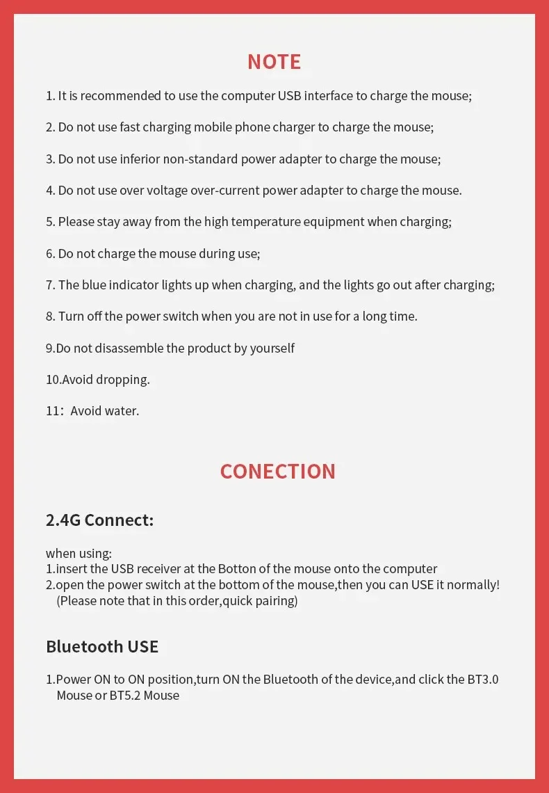 • Rechargeable Battery :No need to constantly replace batteries, simply recharge the mouse for extended use.